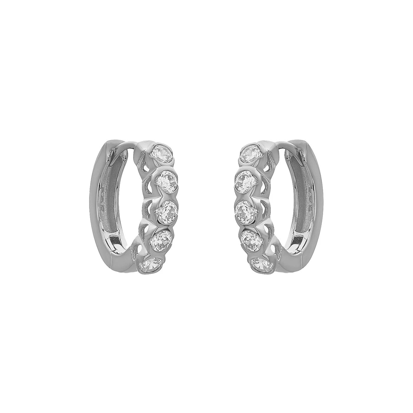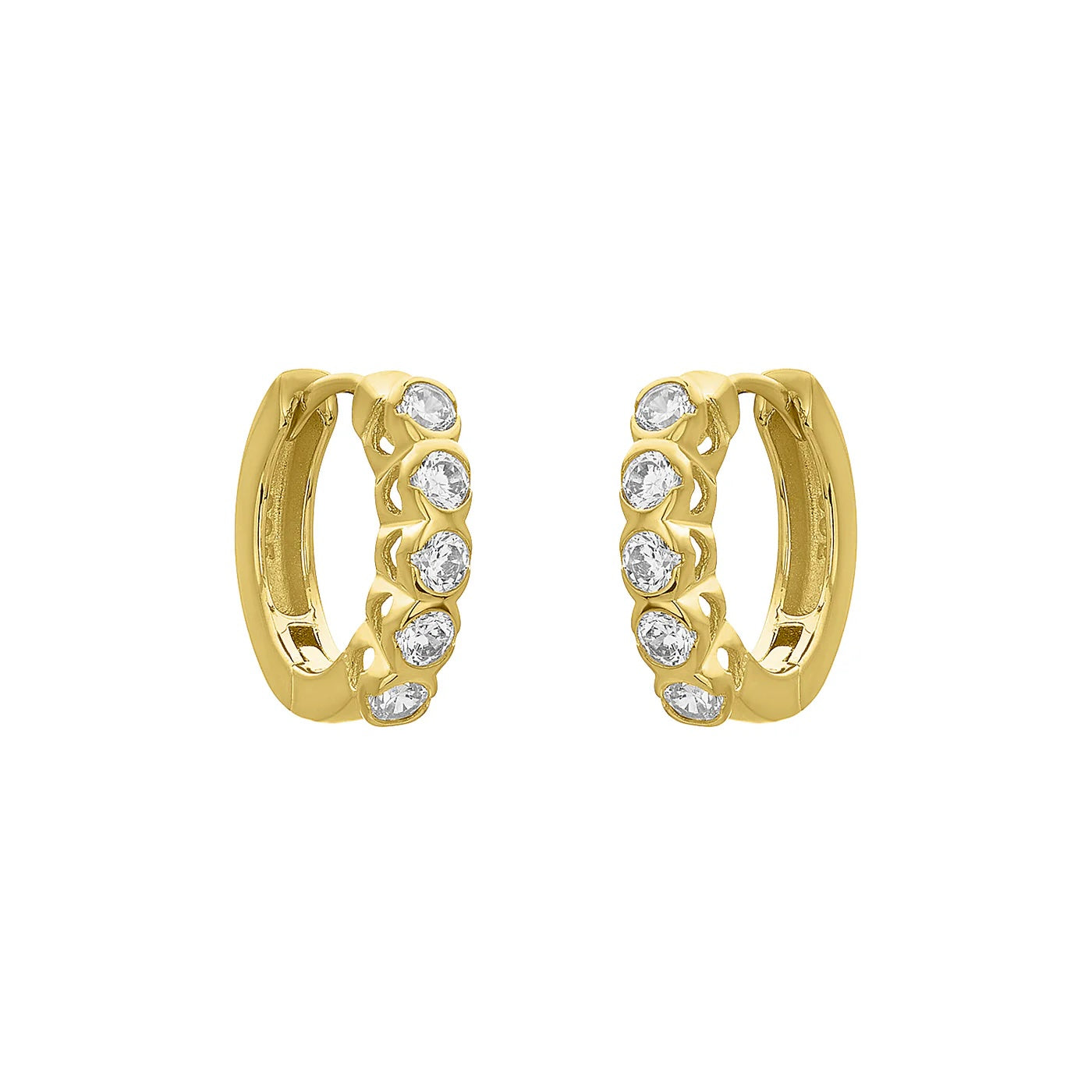 Crafted from 925 sterling silver and enriched with an 18k gold plating, the FYB Maeli Huggies Earrings offer both durability and a luxurious finish. Featuring sparkling cubic zirconia stones, these hypoallergenic earrings are designed for sensitive skin while adding refined elegance to your everyday look. Ideal for those seeking expert-quality jewelry with lasting comfort and style.