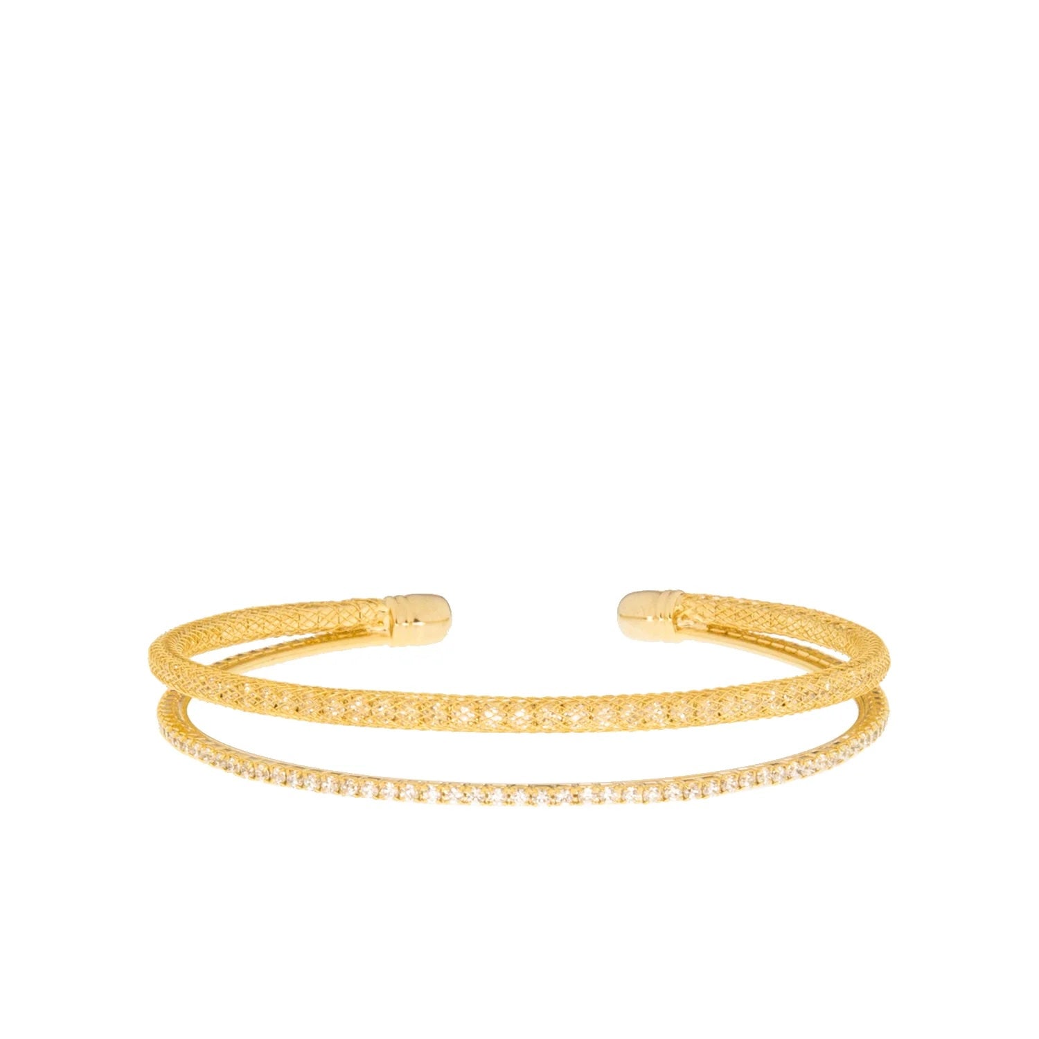 Elevate your wrist game with the Kate Gold Cuff—a stunning double pave design that catches the light from every angle. This luxe accessory layers beautifully with your favorite pieces or shines solo as the ultimate statement maker. Crafted with meticulous attention to detail, it's the kind of sparkly companion that transforms any outfit from ordinary to absolutely unforgettable. Because sometimes your accessories deserve to be the main character.