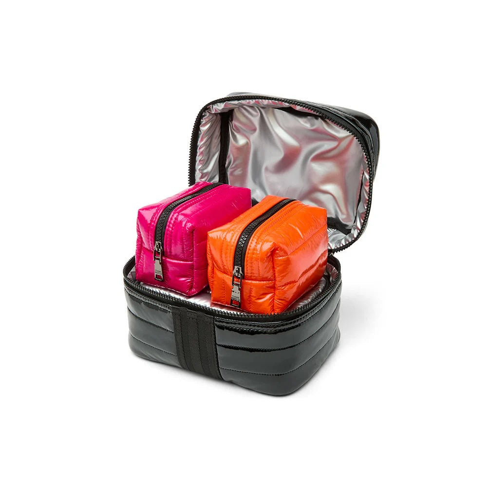 Three coordinating bags fit into a larger bag as a power set of packing all your essentials from beauty to technology to health and wellness and beyond…everything you need to stay glamorous on the go!