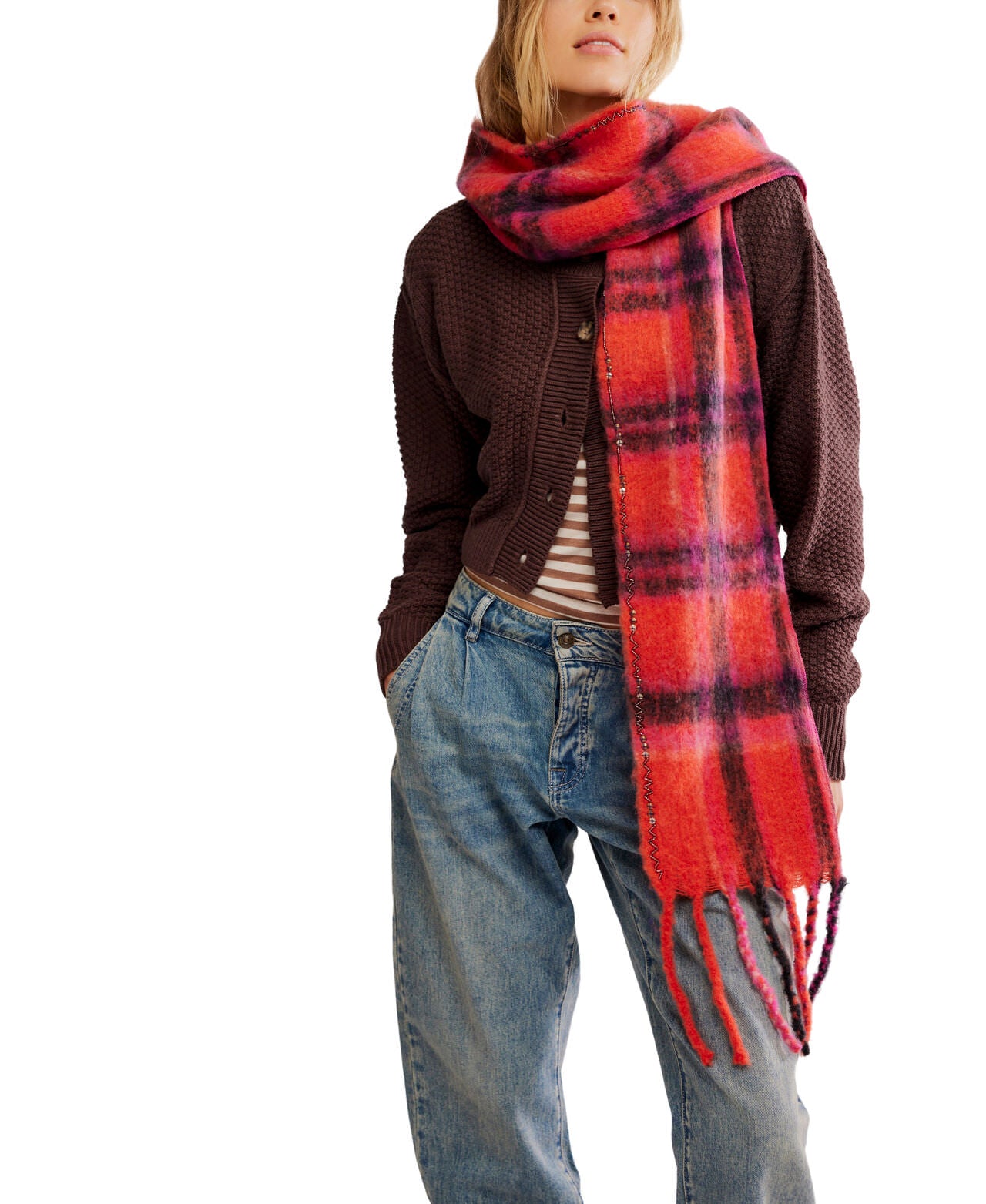 Plaid scarves are a fall staple and this one is a must-have this season. So whether it's ivory or pink, you can't go wrong with this third piece accessory in any fit.