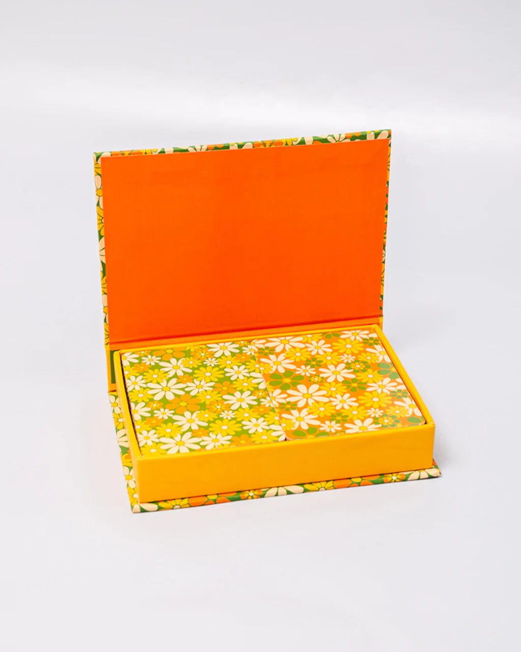 Each deck blooms with colorful designs inspired by vintage prints and sunny afternoons. They’re perfect for poker, rummy, or just a good old-fashioned round of go fish with friends.