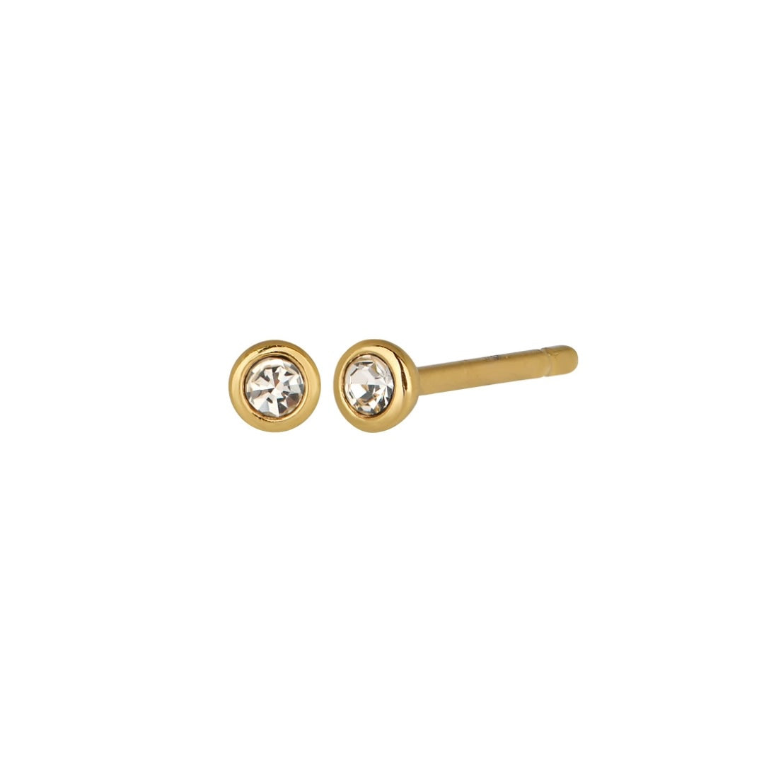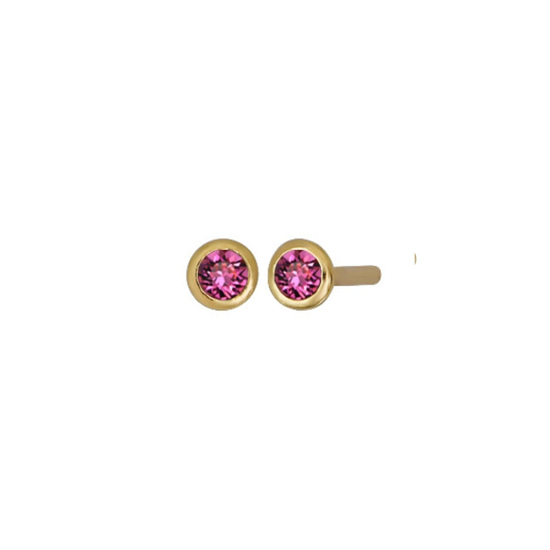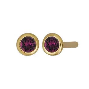 Our birthstone stud earrings feature dainty 2mm bezel set stones in gold. The perfect lightweight earring to be worn on it’s own, or as a second or third piercing.
