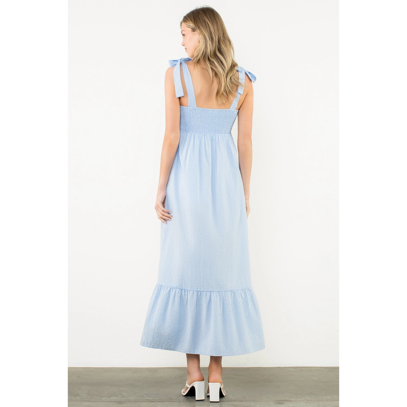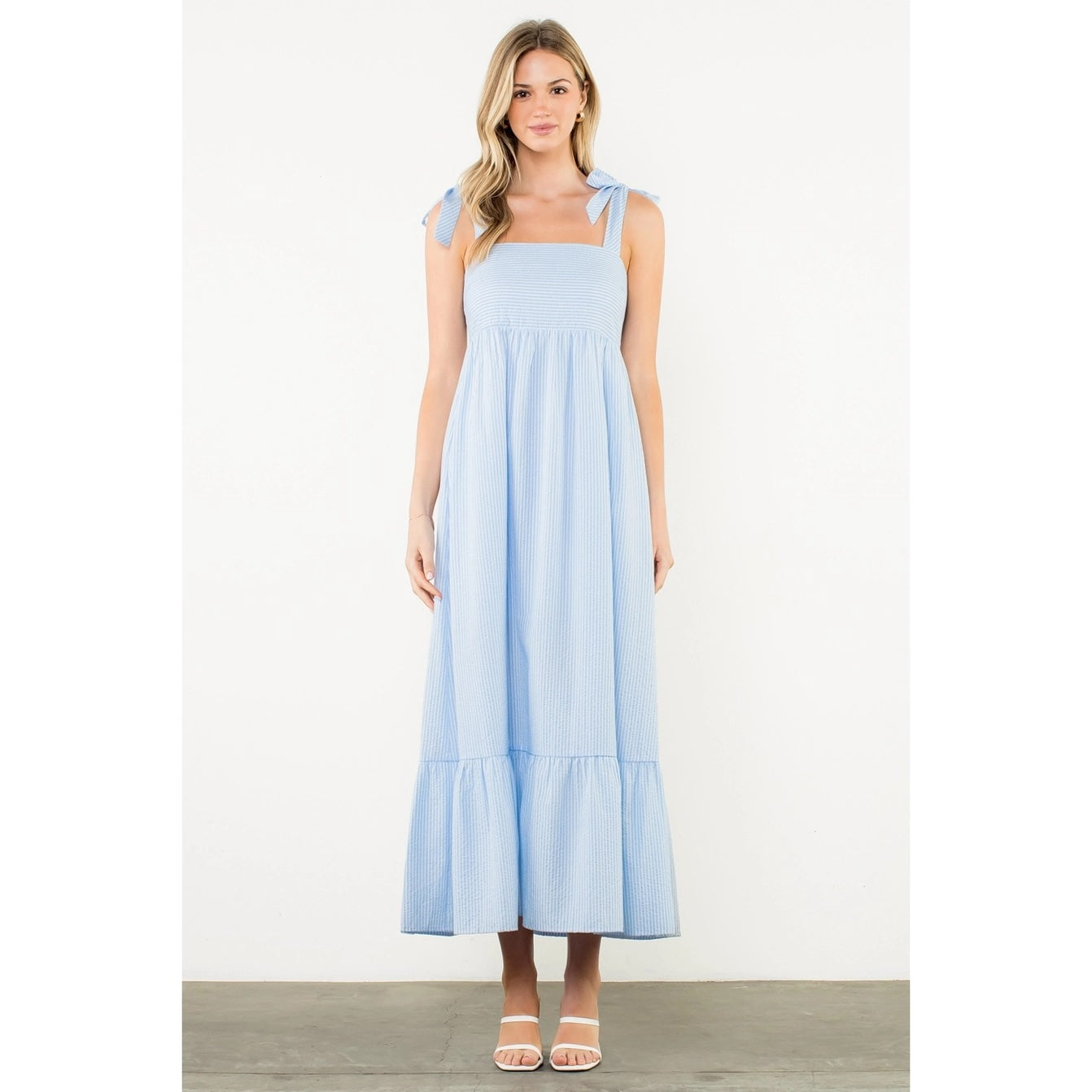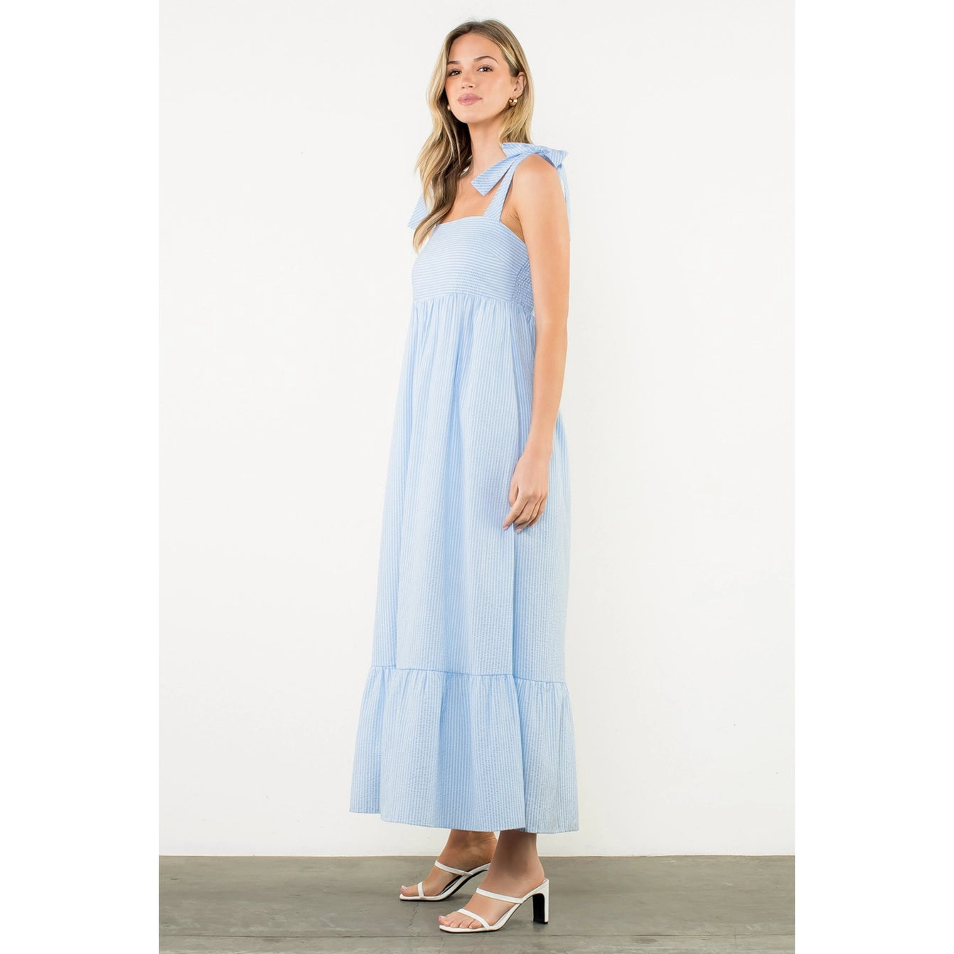 THML - Light Blue Tie Strap Seersucker Maxi Dress - FINAL SALE