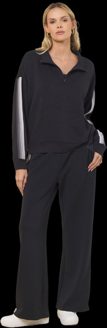 Vintage Havana - Black with Tonal Grey Striped Cloud Fleece Quarter Zip